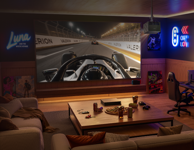 Com suporte a proporções ultra-wide 21:9 e 32:9, o projetor proporciona uma experiência de jogo imersiva que rivaliza com monitores de jogos dedicados.