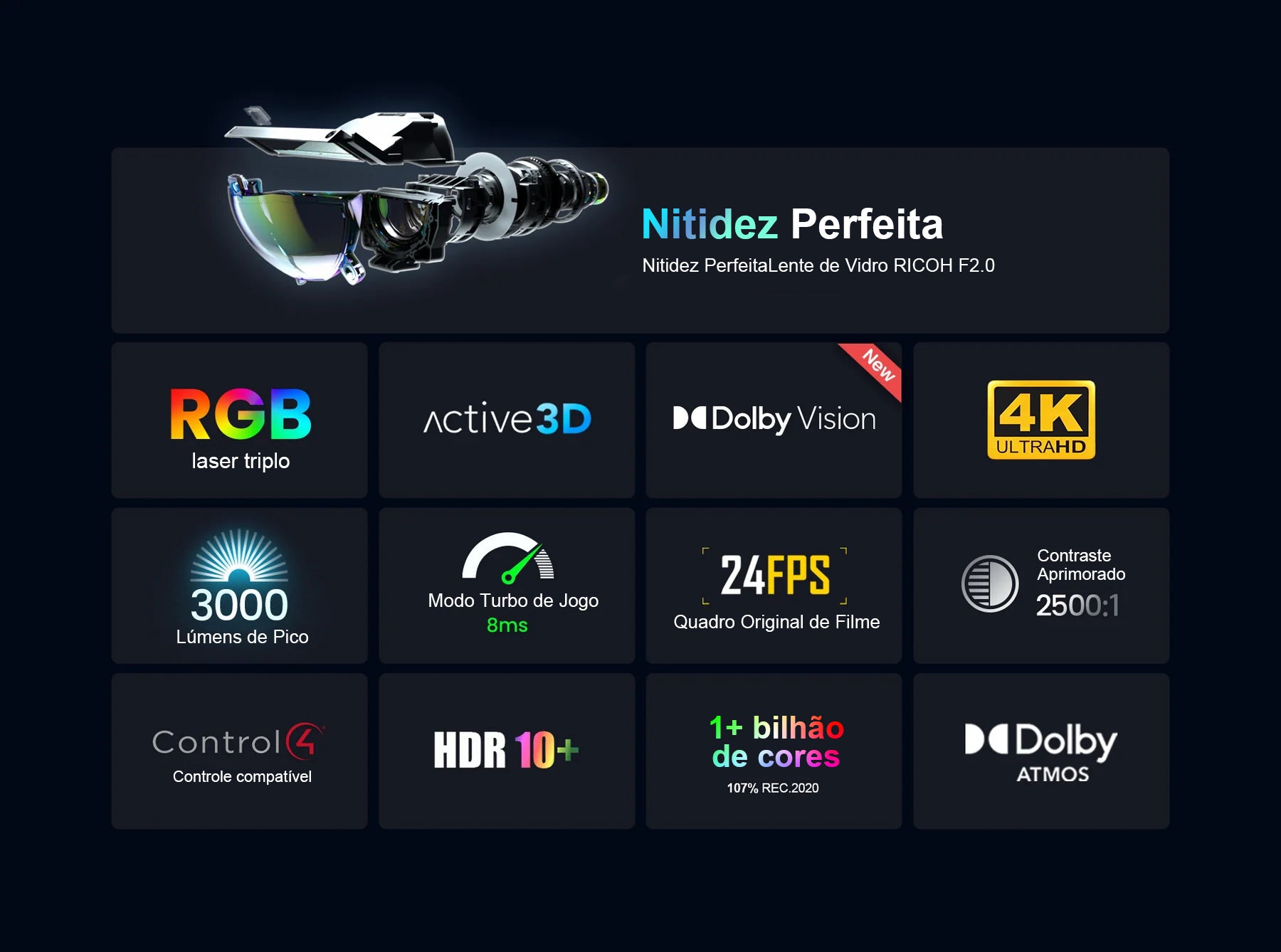 - 3000 lúmens de pico / laser RGB 4K