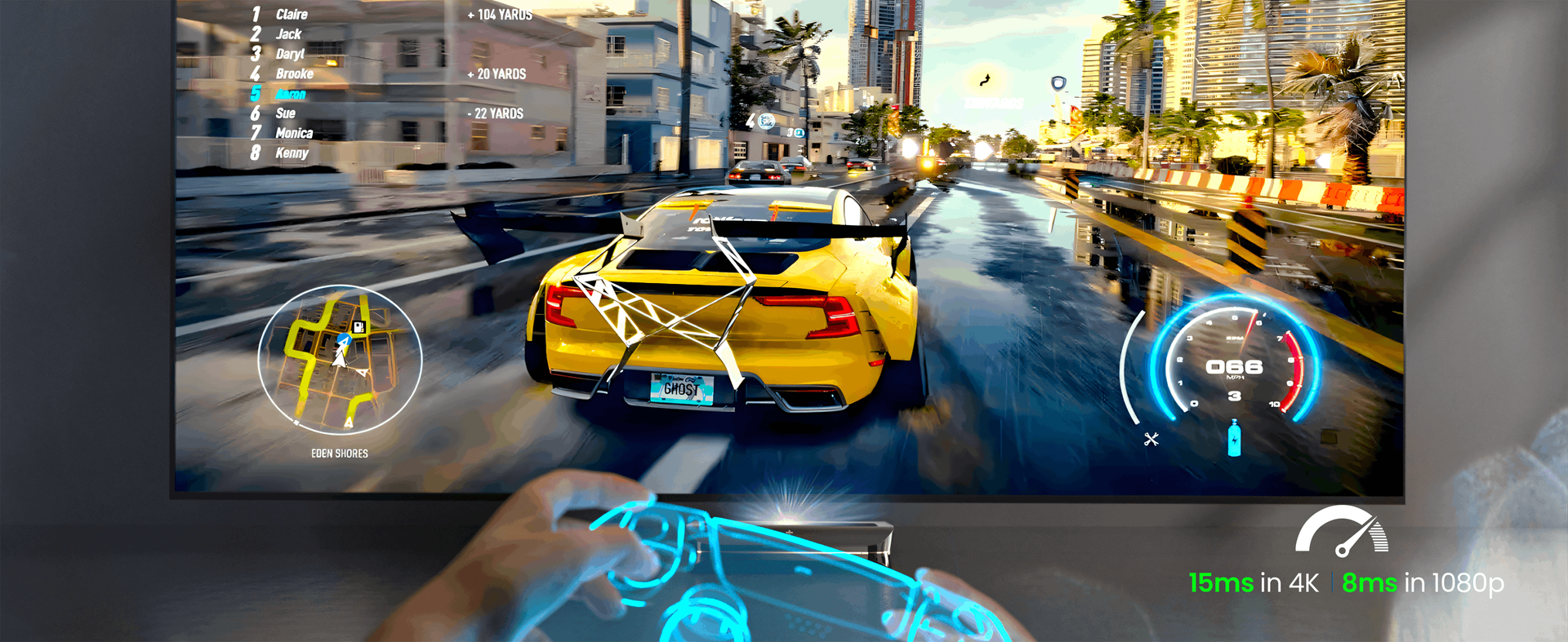 | Atraso de Entrada | 15ms 4K@60Hz, 8ms 1080p@120Hz no Modo Turbo |