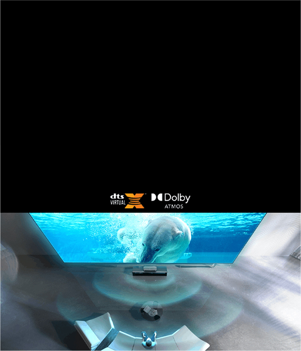 - Dolby Vision & Atmos: Dolby Vision HDR otimiza dinamicamente a cor, o contraste e o brilho. Com a sensação de som se movendo ao seu redor e acima de você, Dolby Atmos faz você se sentir no meio da ação.