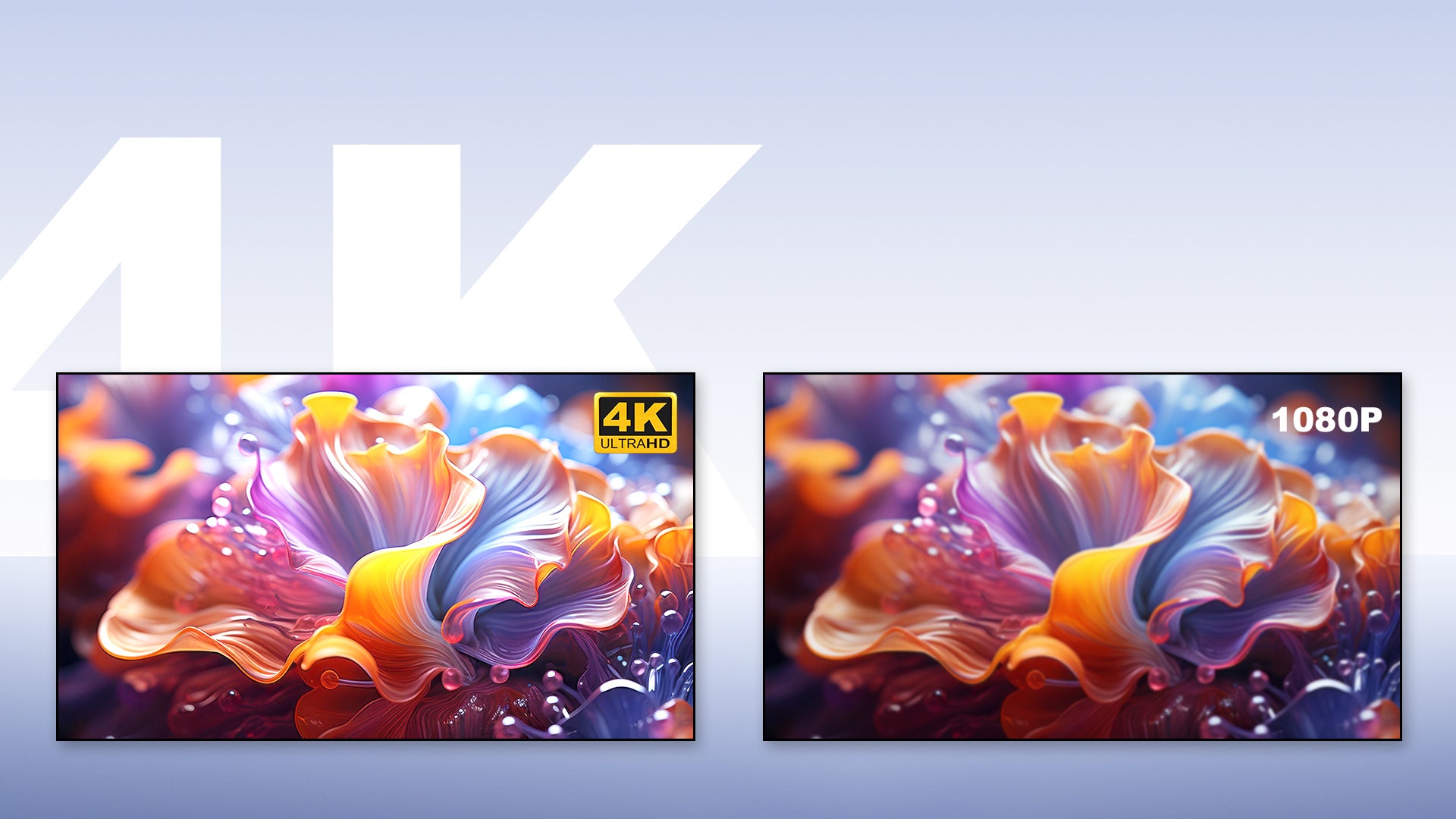 Formatos comuns: 1:1, 4:3, 16:9, 2.35:1. Para projetores modernos, 16:9 é perfeito – enquadramento impecável para filmes, séries e jogos.