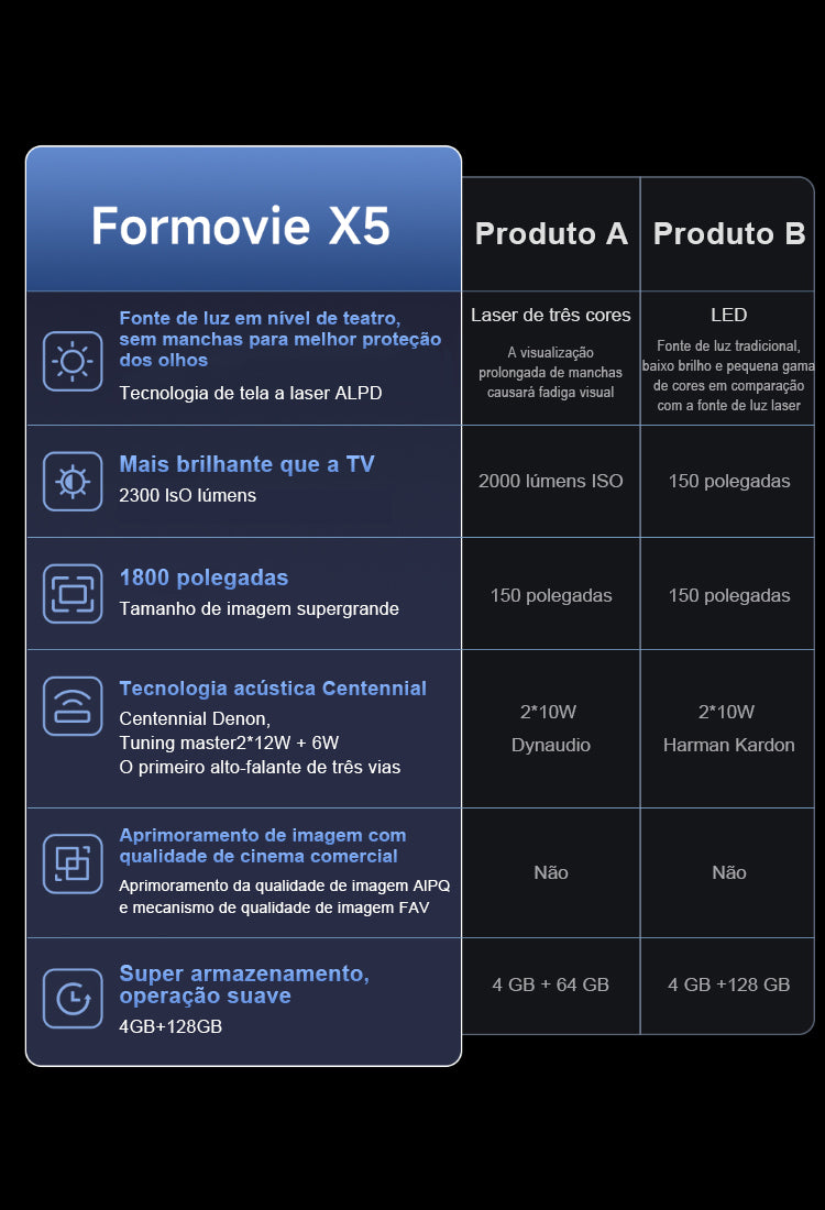 MELHOR PROJETOR Longa Distância para Home Cinema de 2023-Formovie X5 - Projetor a Laser com maior brilho da atualidade, com som sensacional Denon e todos os recursos de imagem disponíveis atualmente (HDR 10+ e mais). Aqui verá todas suas especificações, imagens, dicas de configuração e testes incríveis!