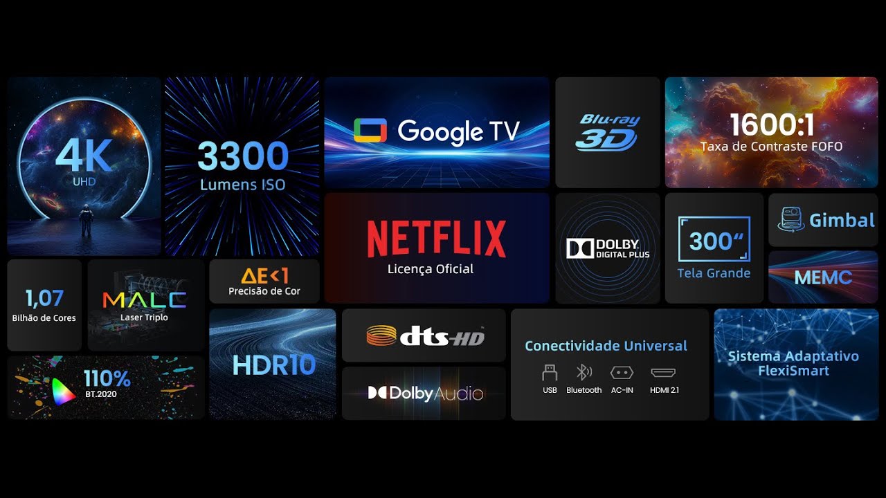 Projetor JMGO N1S Ultimate 4K a Laser para Áreas Externas com 3300 Lúmens ISO, Google TV e Netflix Integrado
