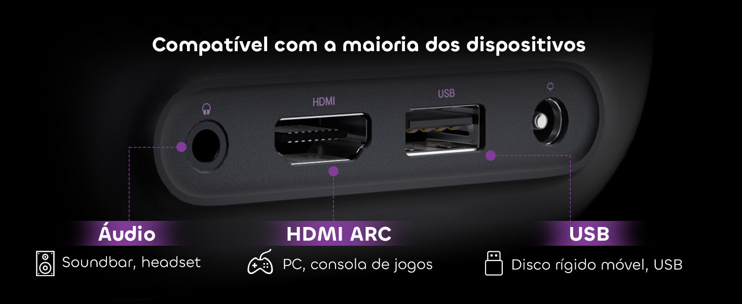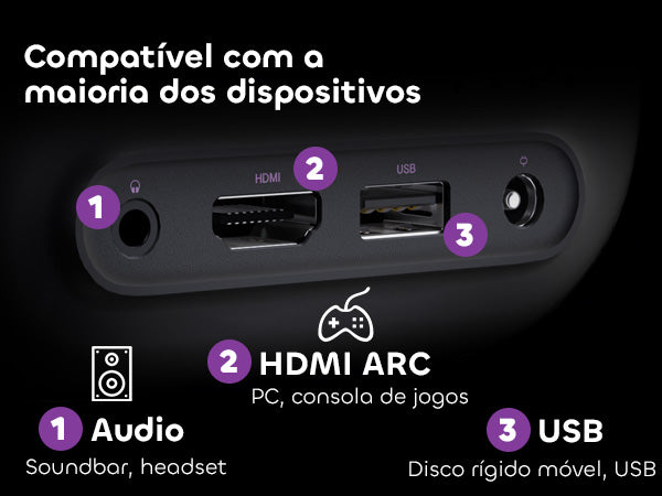 Alto-falantes duplos de 3W com Dolby Audio oferecem som imersivo e rico — sem necessidade de soundbar. Diálogos, músicas ou explosões: cada detalhe é reproduzido com clareza e profundidade.