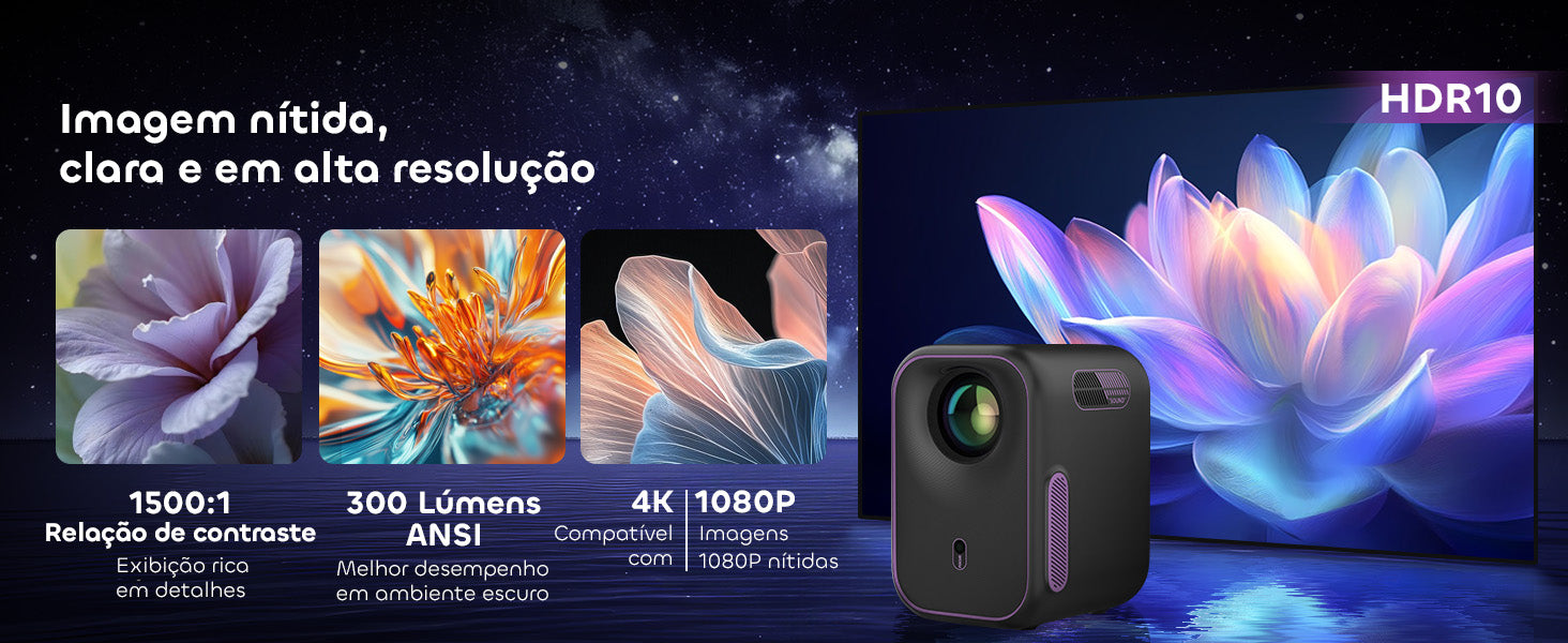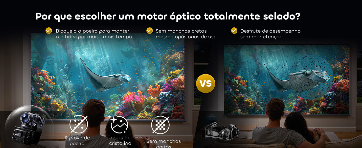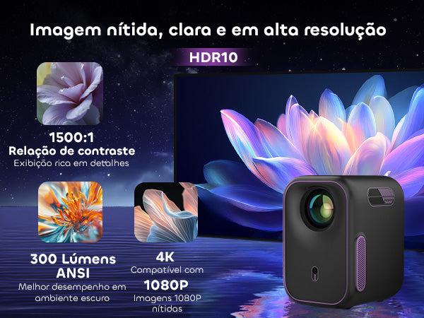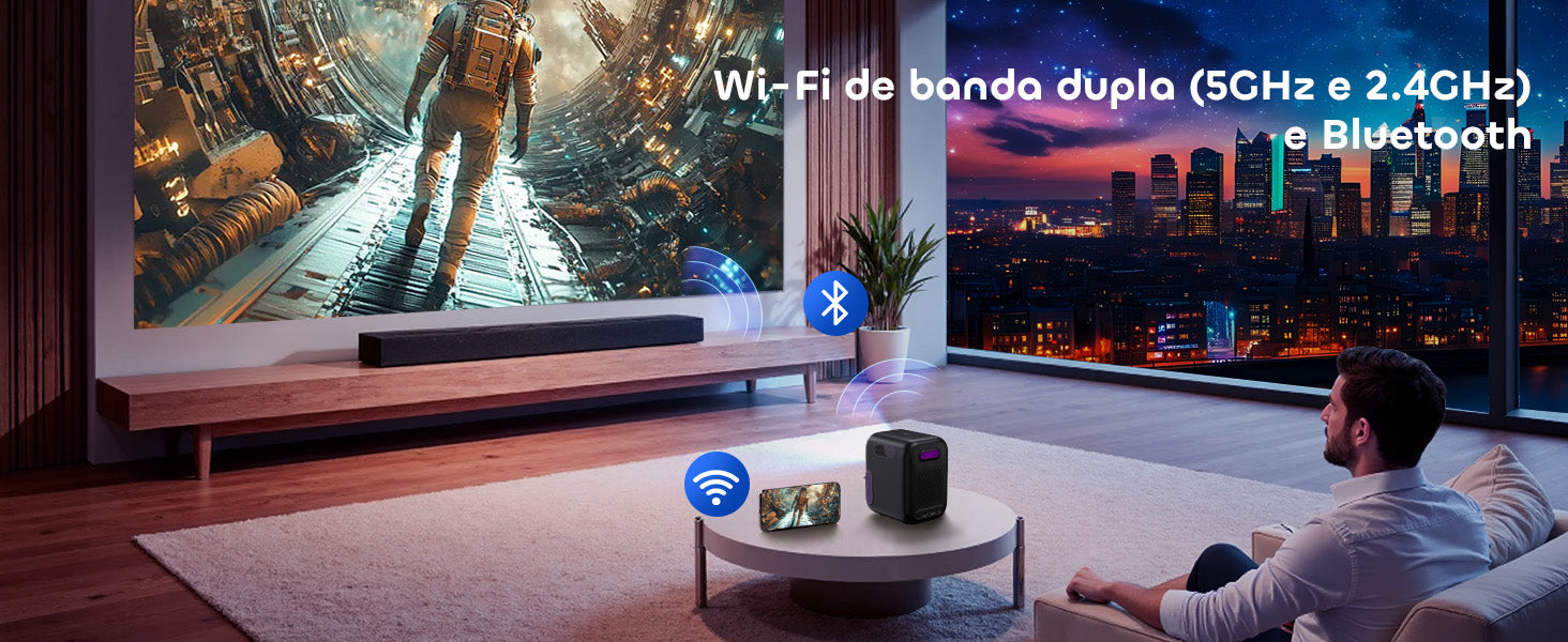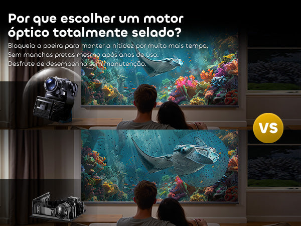 Esqueça ajustes complicados. Com seu Sistema de Ajuste Inteligente, este projetor realiza foco automático, correção keystone, evitação de obstáculos e alinhamento de tela — tudo automaticamente. Coloque-o, ligue-o, e ele otimiza a imagem para você.