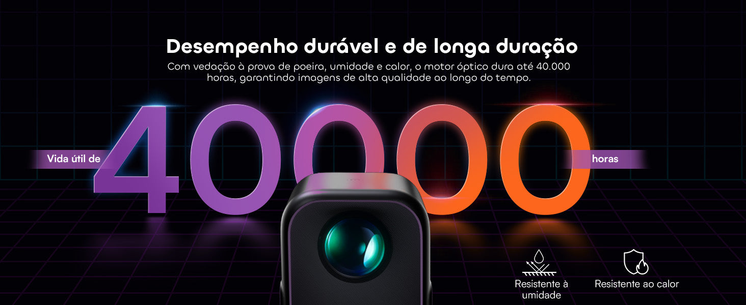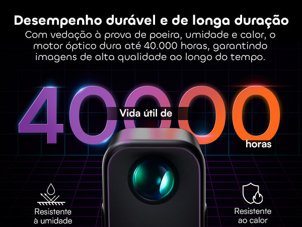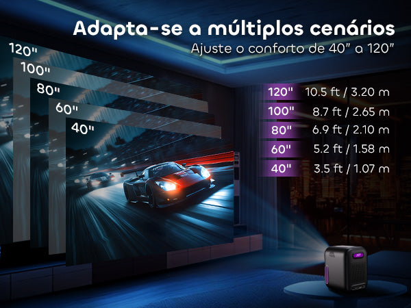 Projetando uma tela aconchegante de 40” ou impressionantes 120”, o brilho de 300 lumens ISO e a resolução Full HD garantem imagens nítidas na maioria dos ambientes internos. Noite de cinema? Sessão de jogos? Apresentações? Tudo resolvido.