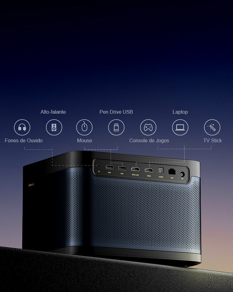 Sim. Você pode conectar o projetor a um console Switch, PS4/PS5 e Xbox usando um cabo HDMI.