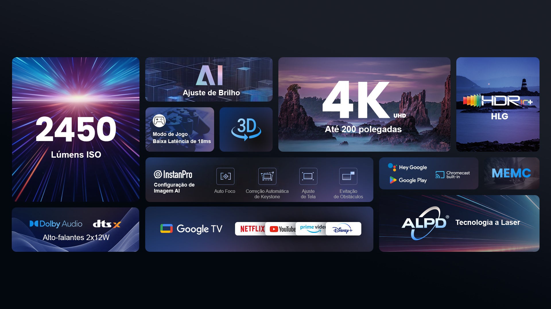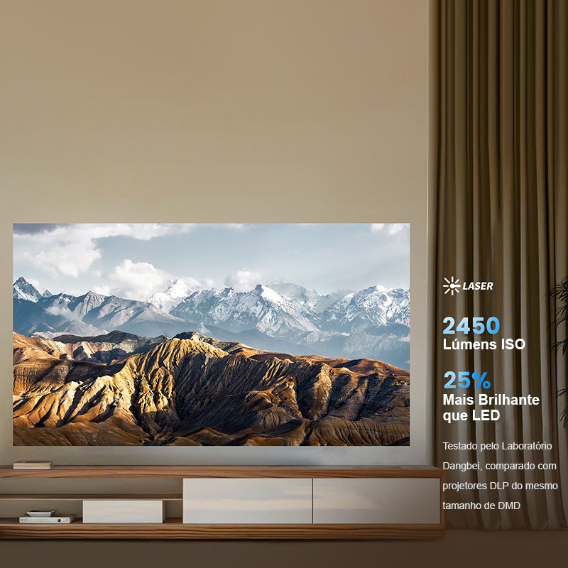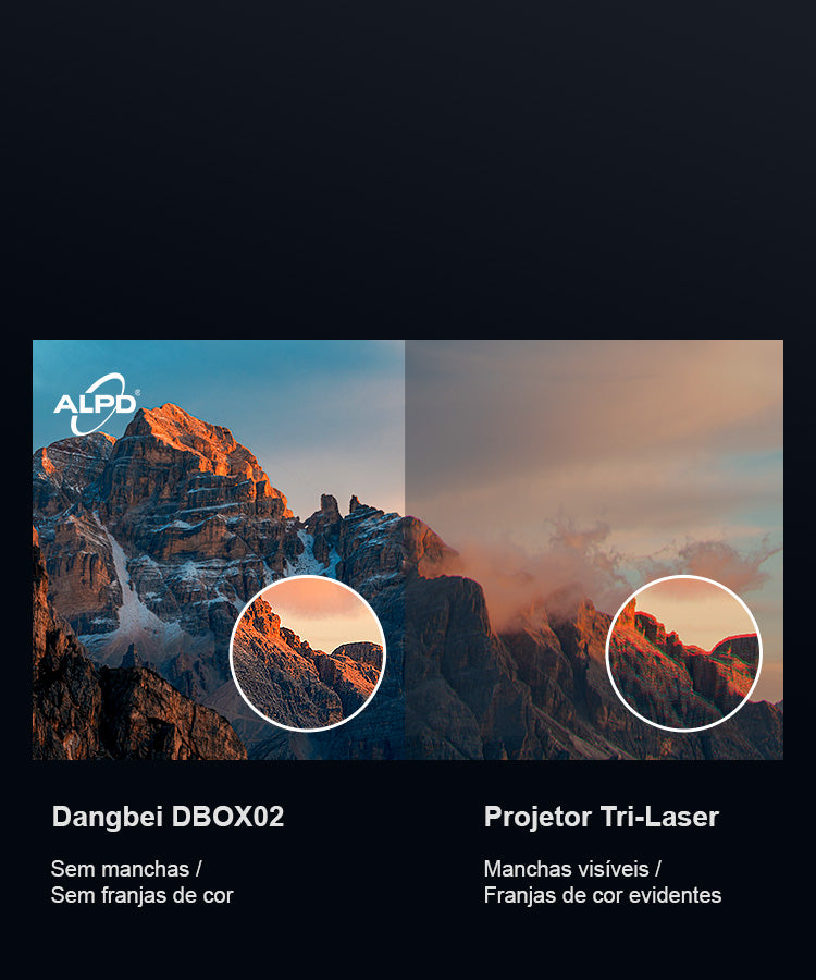 - Cativante e confortável: a tecnologia avançada de exibição de fósforo a laser, adotada por mais de 30.000 cinemas em todo o mundo, oferece visuais nítidos, sem manchas e sem bordas coloridas. Binge-watch sem cansaço visual!