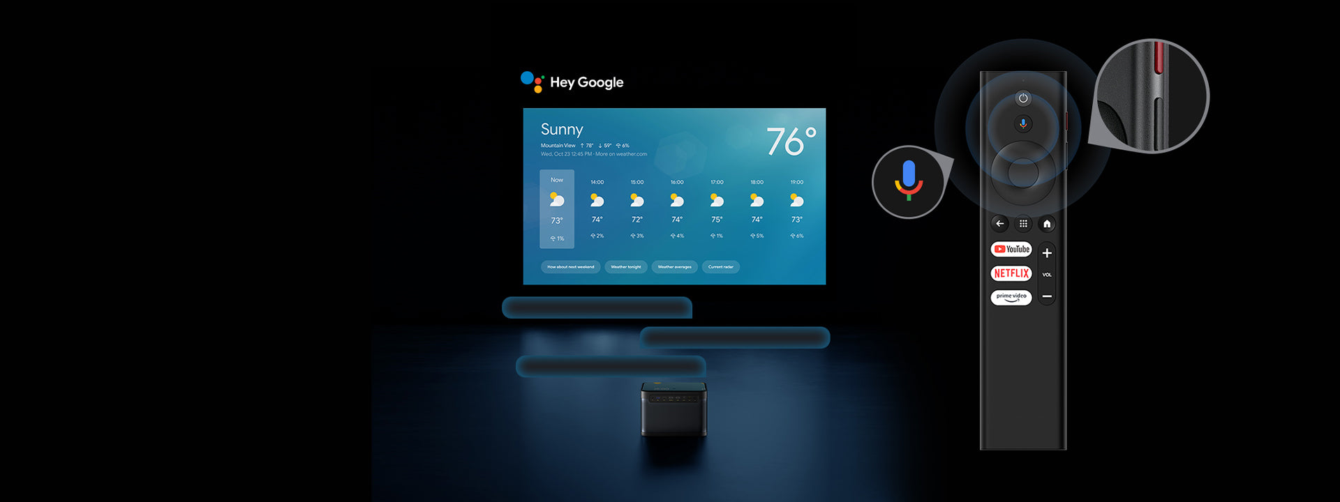 1. Pressione e segure o botão do Google Assistant no controle remoto.