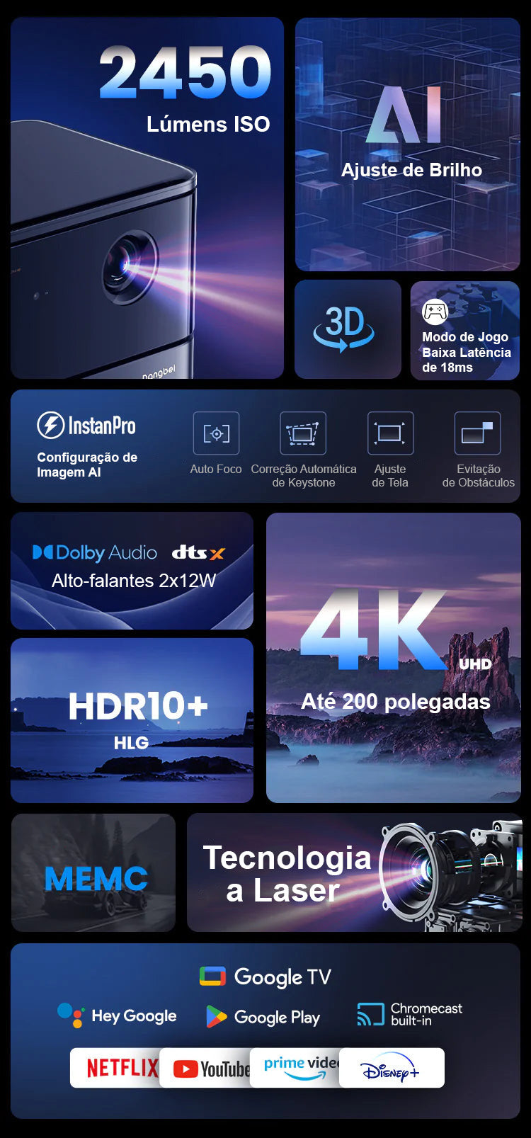 | Chip de Exibição | 0.47" UHD DMD |