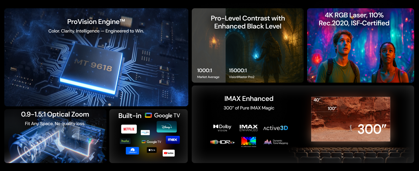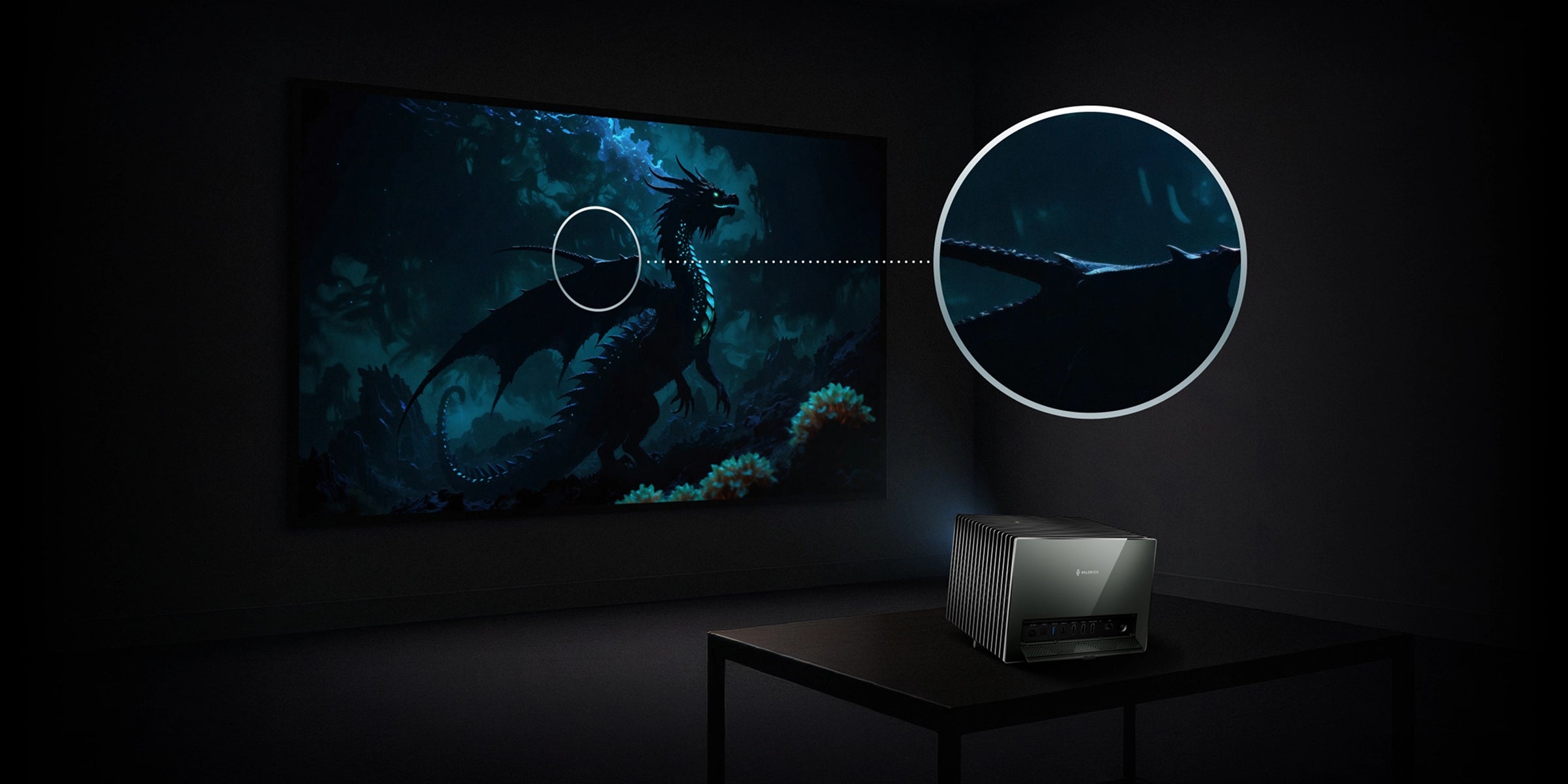 Muitos projetores prometem alto contraste, mas só o VisionMaster Pro 2 entrega preto verdadeiro — sem sacrificar os detalhes que fazem a experiência realmente cinematográfica.