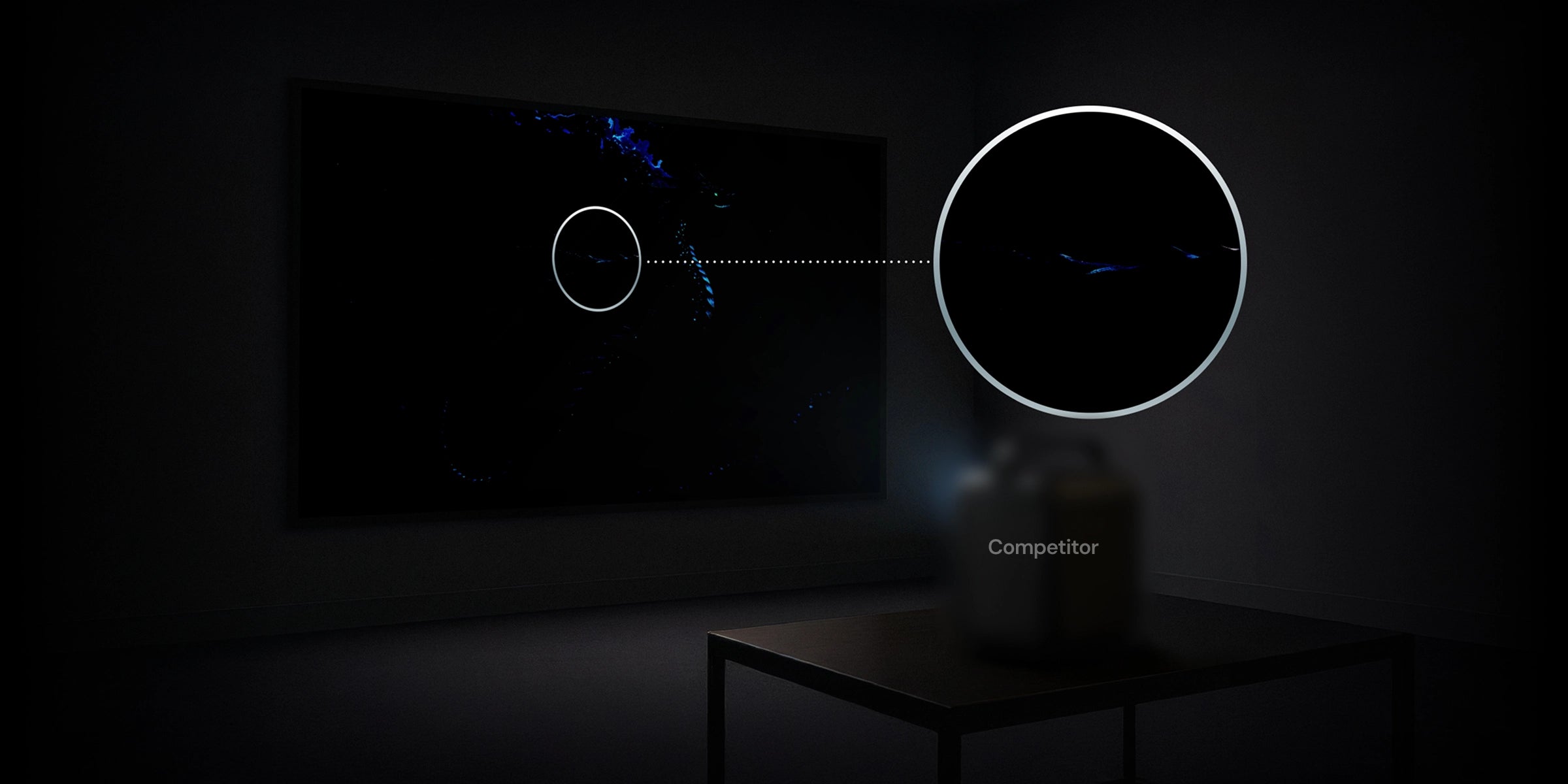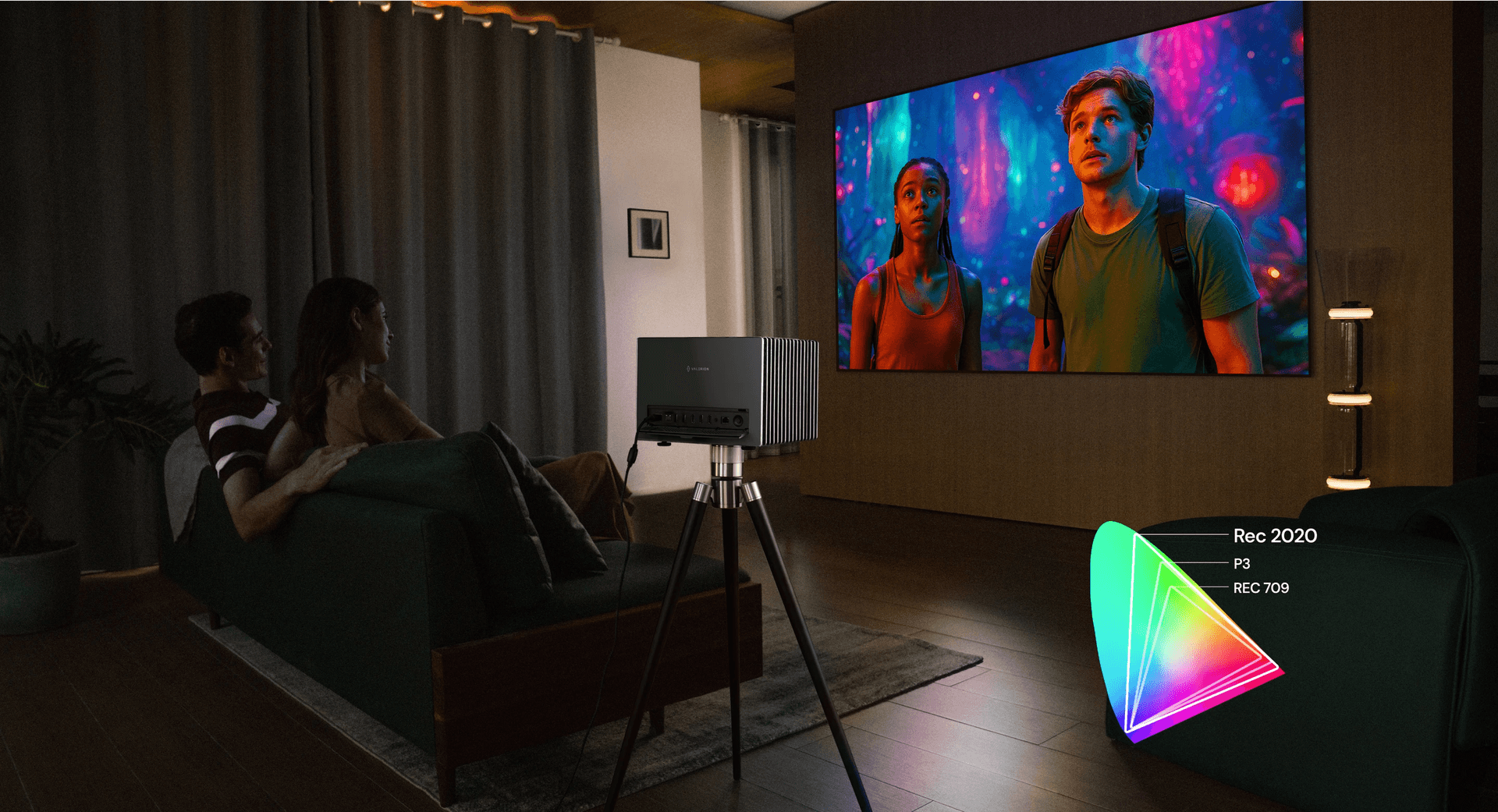 A tecnologia proprietária EBL™ da Valerion ajusta dinamicamente a potência do laser frame a frame — preservando os níveis de preto e cada sombra em detalhamento cinematográfico completo.