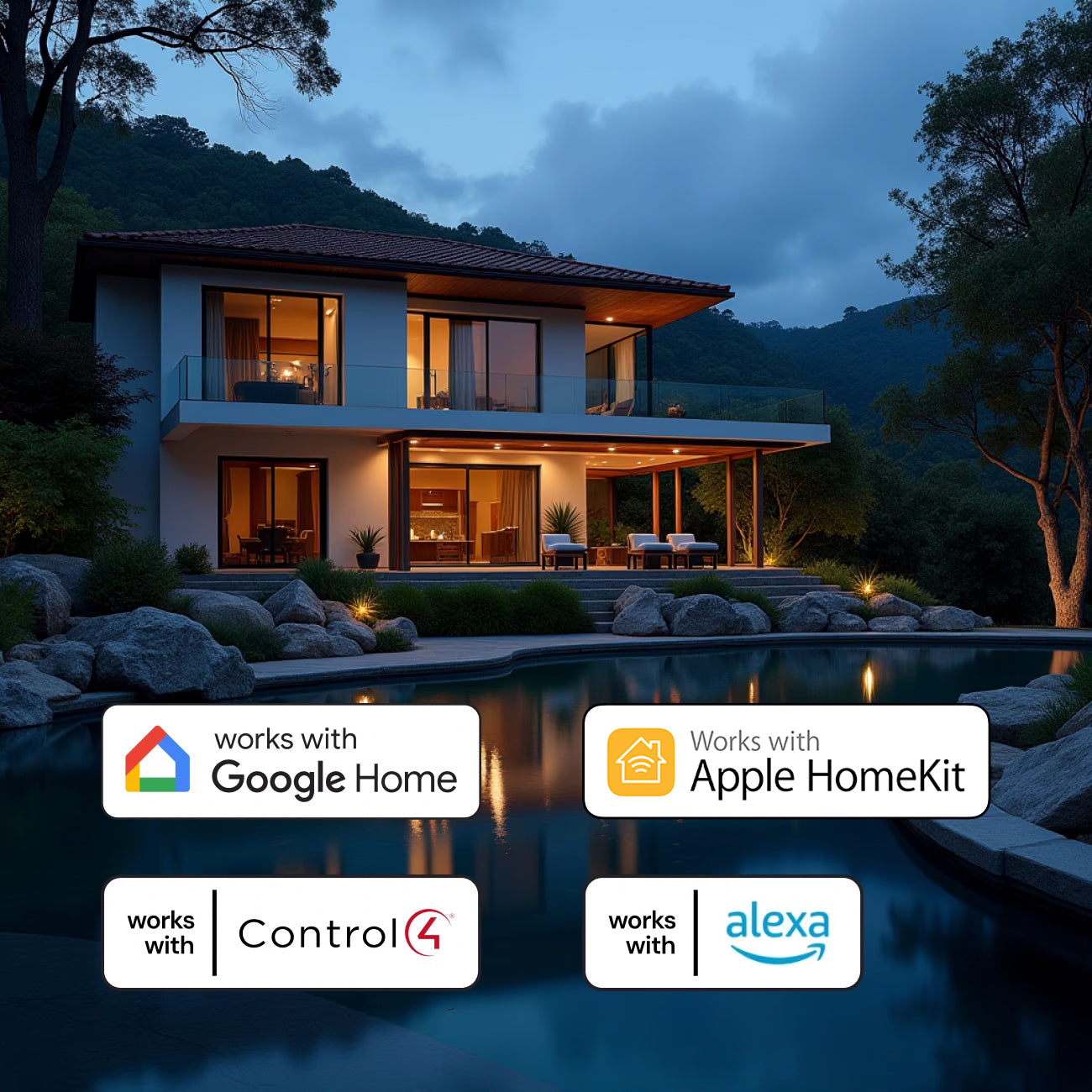 | Plataforma | Google Home, Apple HomeKit, Compatível com Alexa, Control 4 |