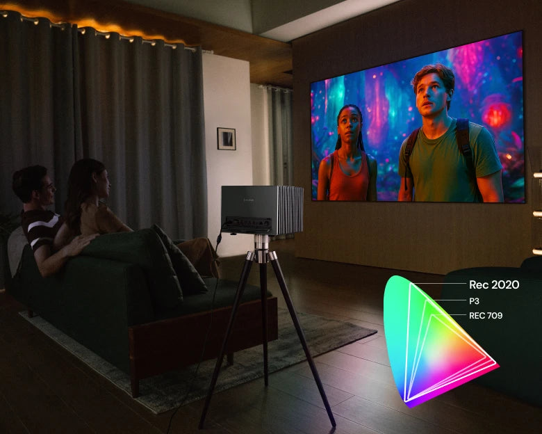 Mergulhe em experiências cinematográficas com 3.500 lúmens e ampla gama de cores de 110% Rec.2020, proporcionando imagens intensamente vibrantes com efeito arco-íris mínimo.
