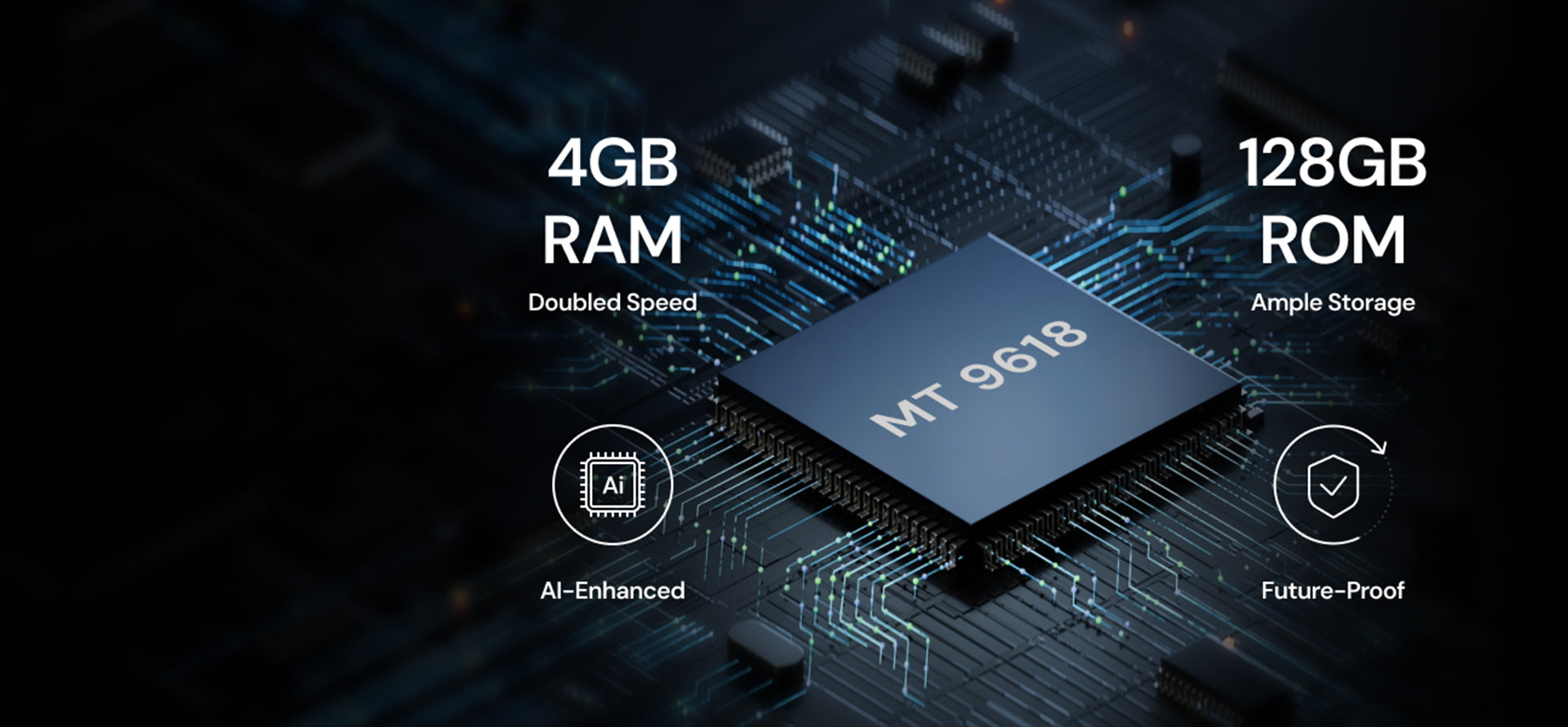 | Plataforma de Chipset | AI-SoC MT9618, 4 GB RAM / 128 GB Memória ROM |
