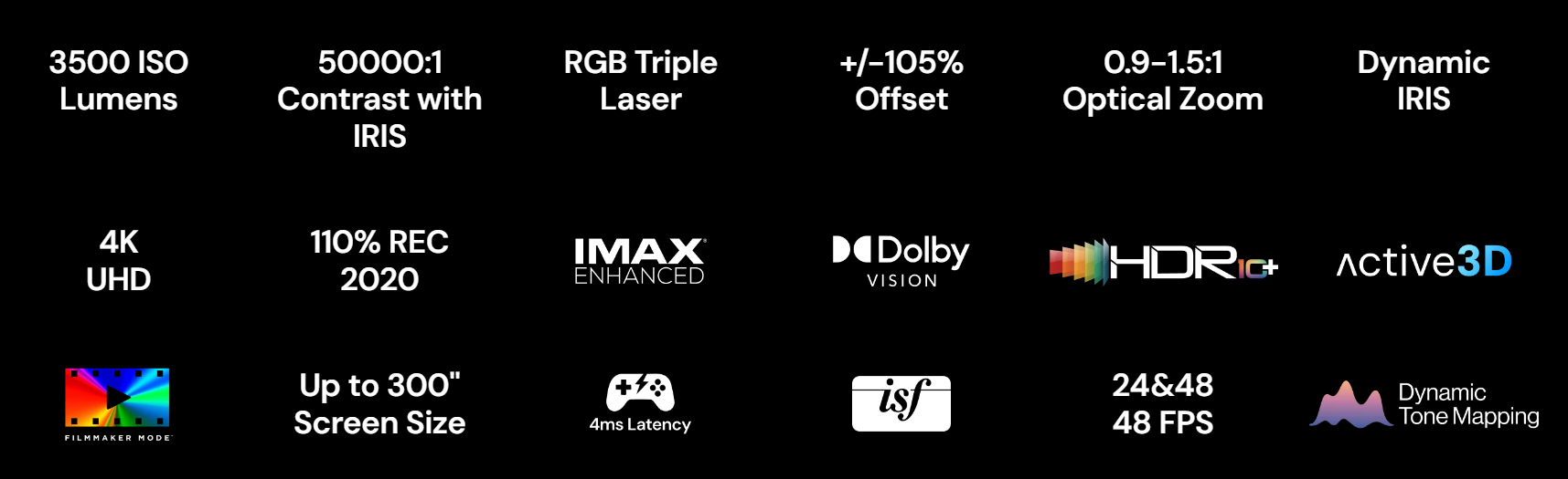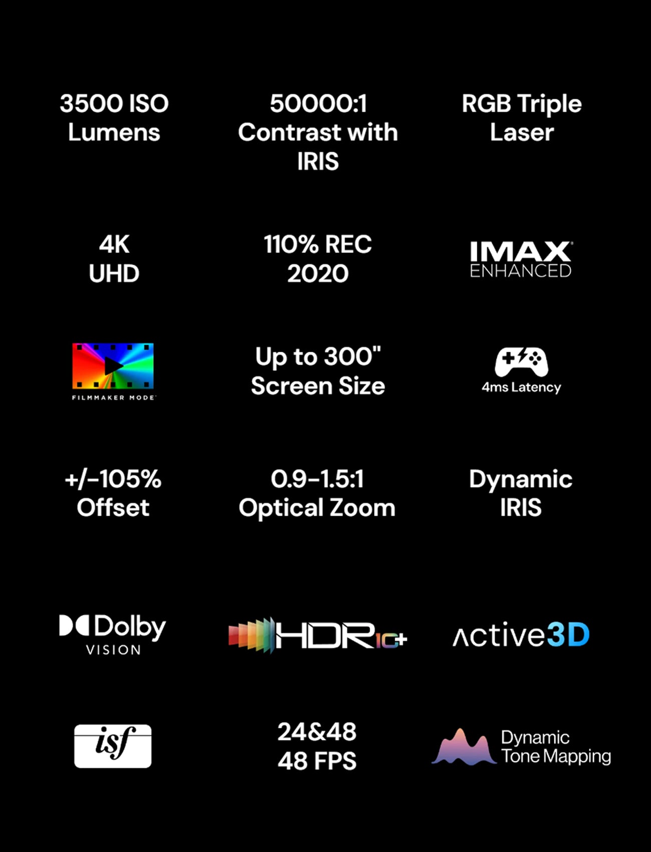 - Suporta IMAX Enhanced, Dolby Vision, HDR10+, 3D Ativo e Modo Filmmaker