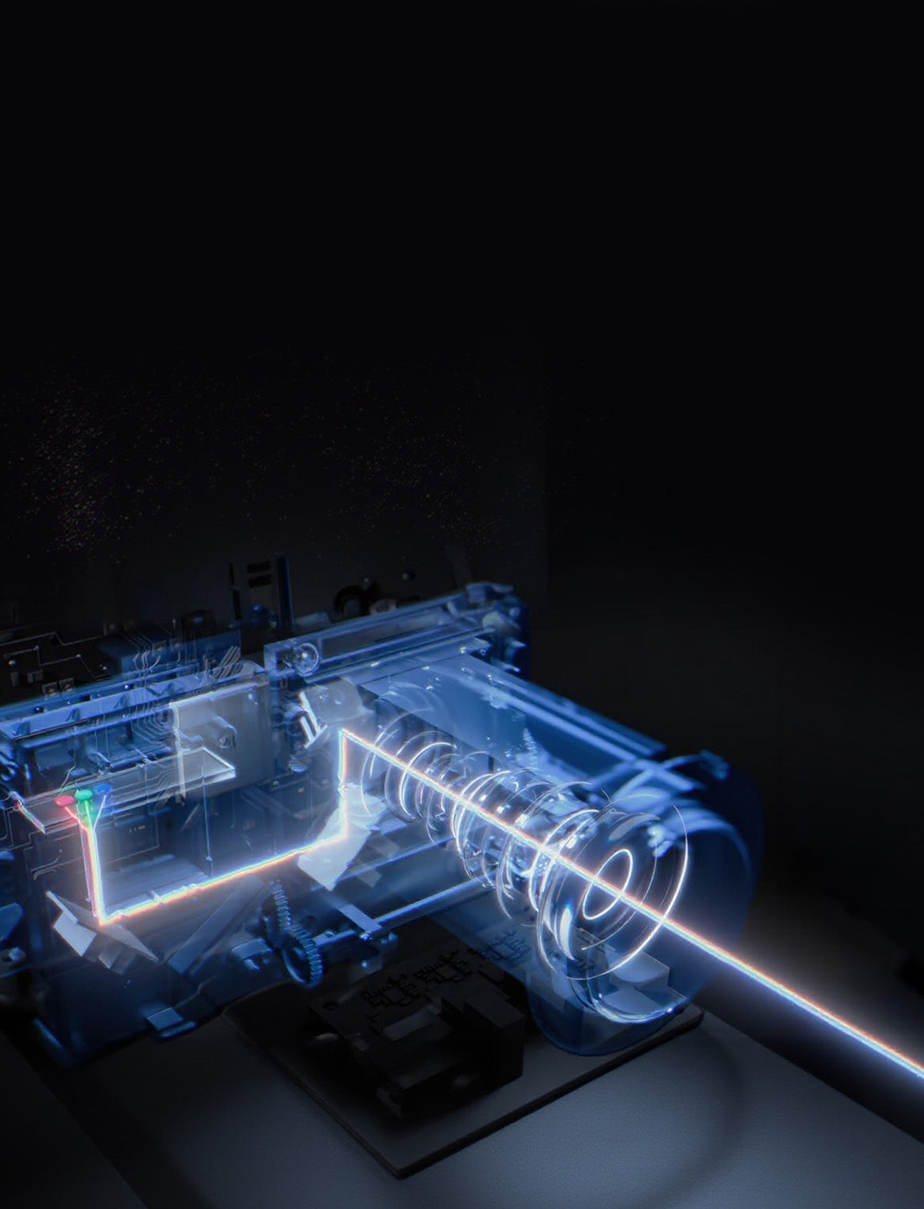 Mergulhe em experiências cinematográficas com 3500 lúmens e uma ampla gama de cores de 110% Rec.2020, proporcionando imagens intensamente vibrantes com efeito arco-íris mínimo.