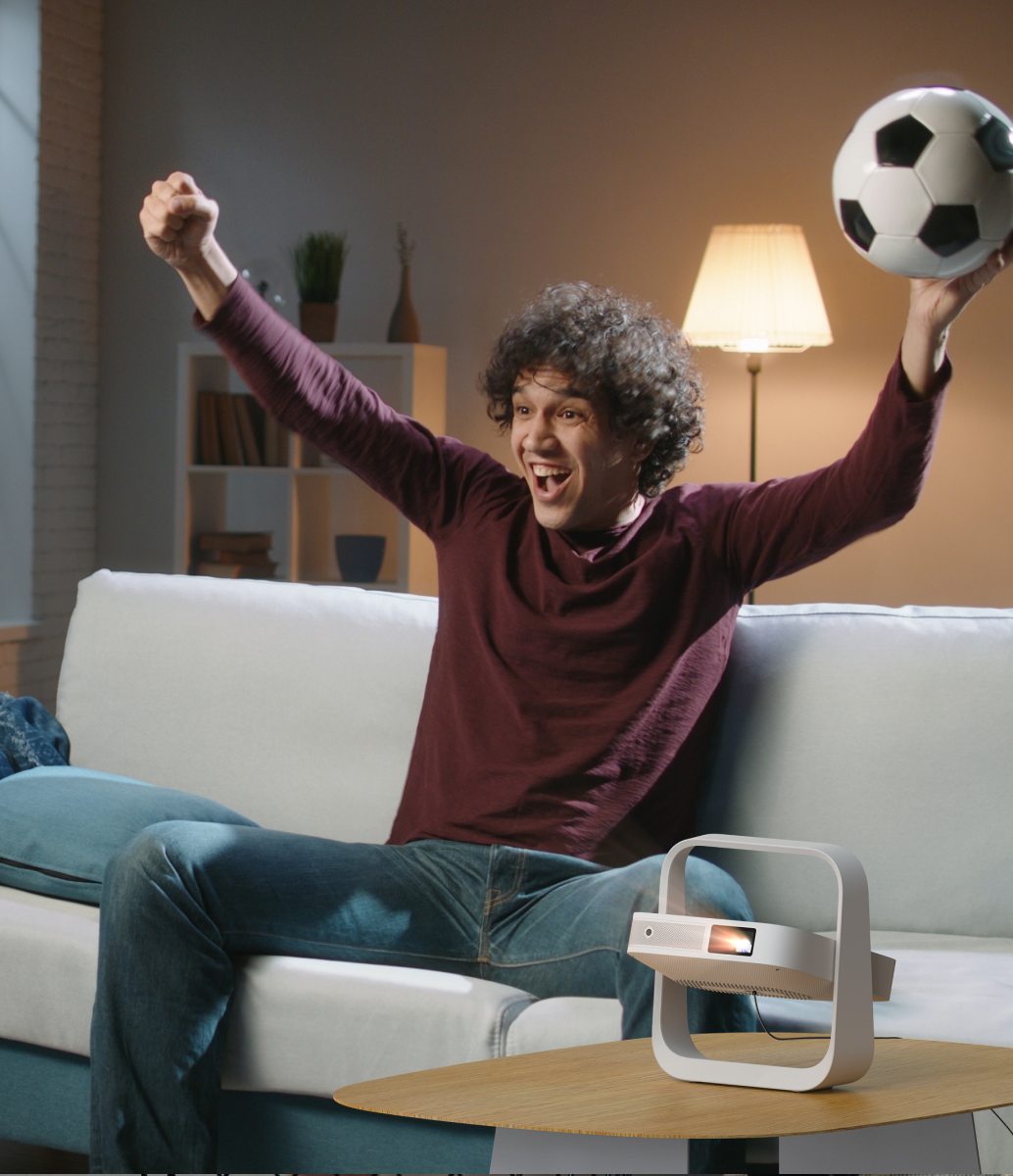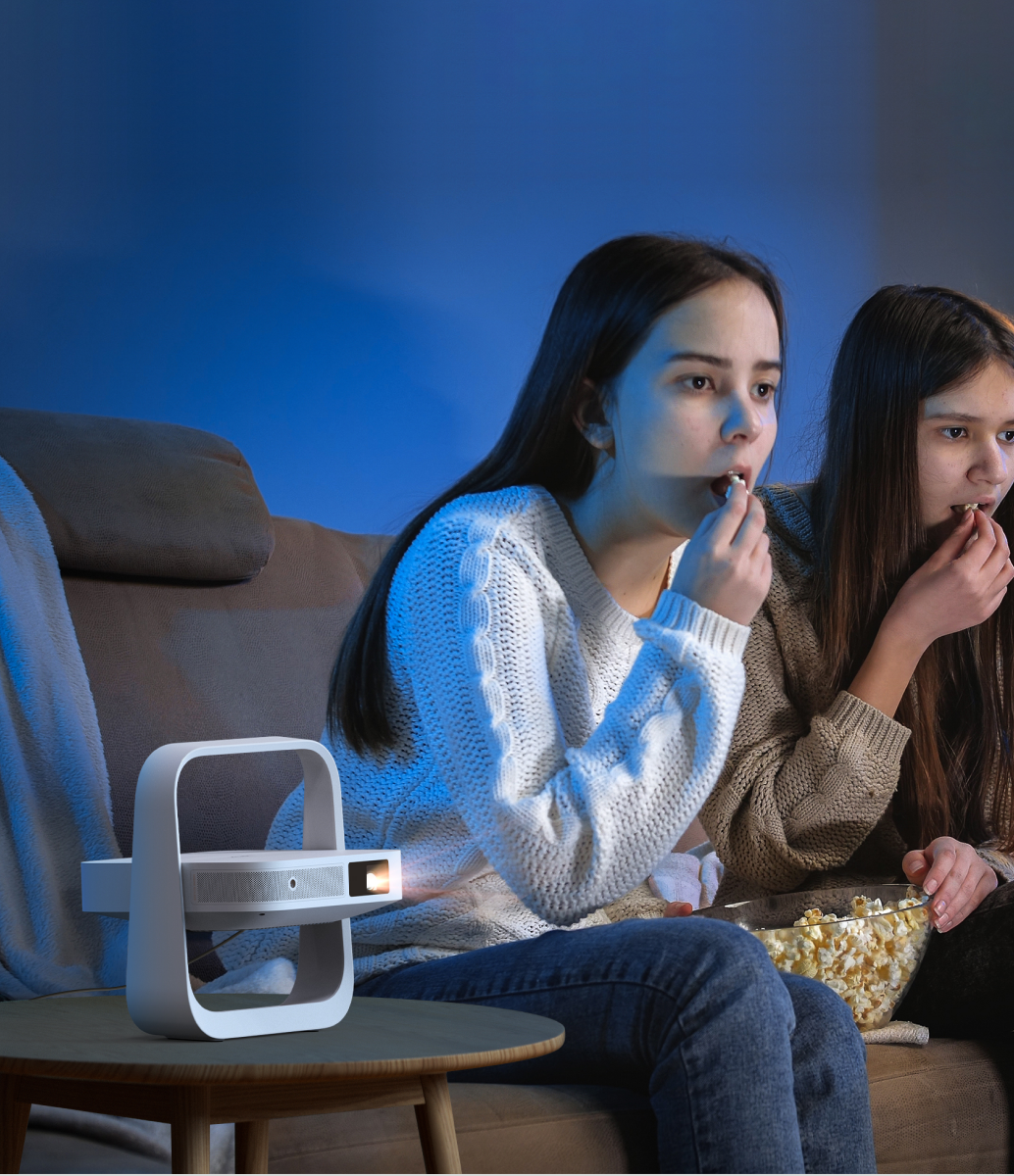 - Suporte ajustável integrado de 150°: Oferece uma flexibilidade de visualização incomparável e permite projetar o conteúdo até no teto. Quando dobrado, o suporte também protege a lente contra arranhões e poeira.
