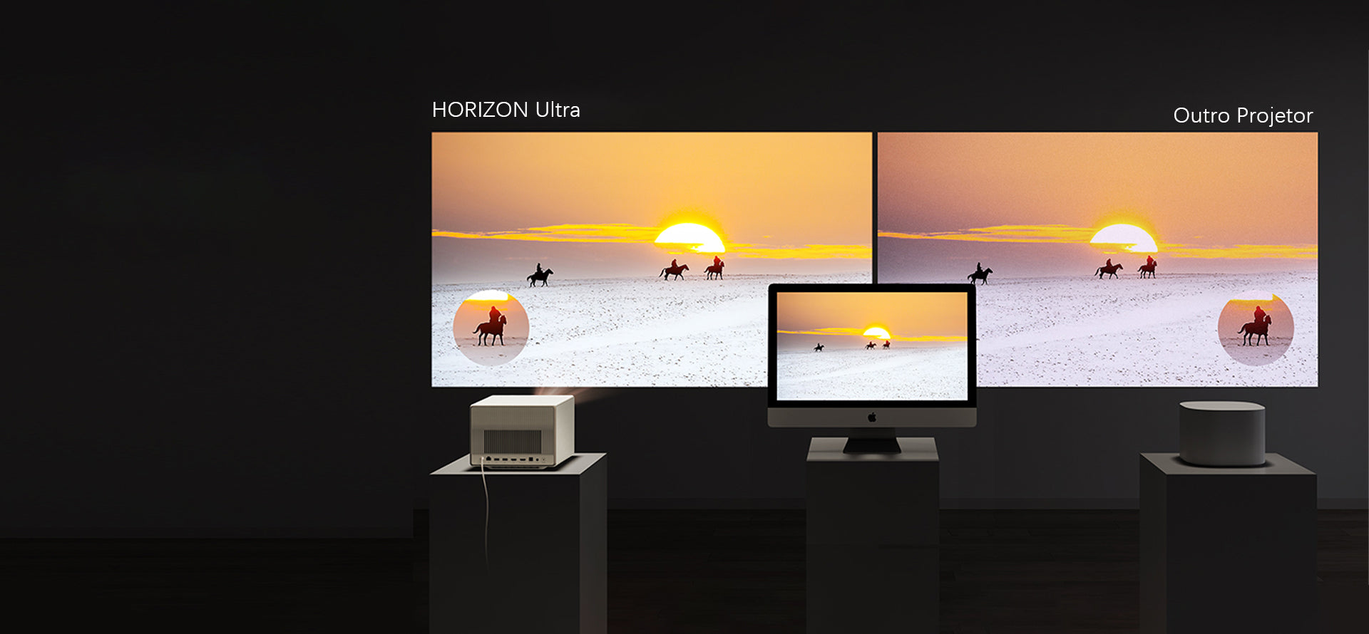 - 2300 ISO Lumens: a HORIZON Ultra apresenta brilho ultra-alto e cores realistas, proporcionando detalhes de imagem incríveis de manhã, de dia e de noite.