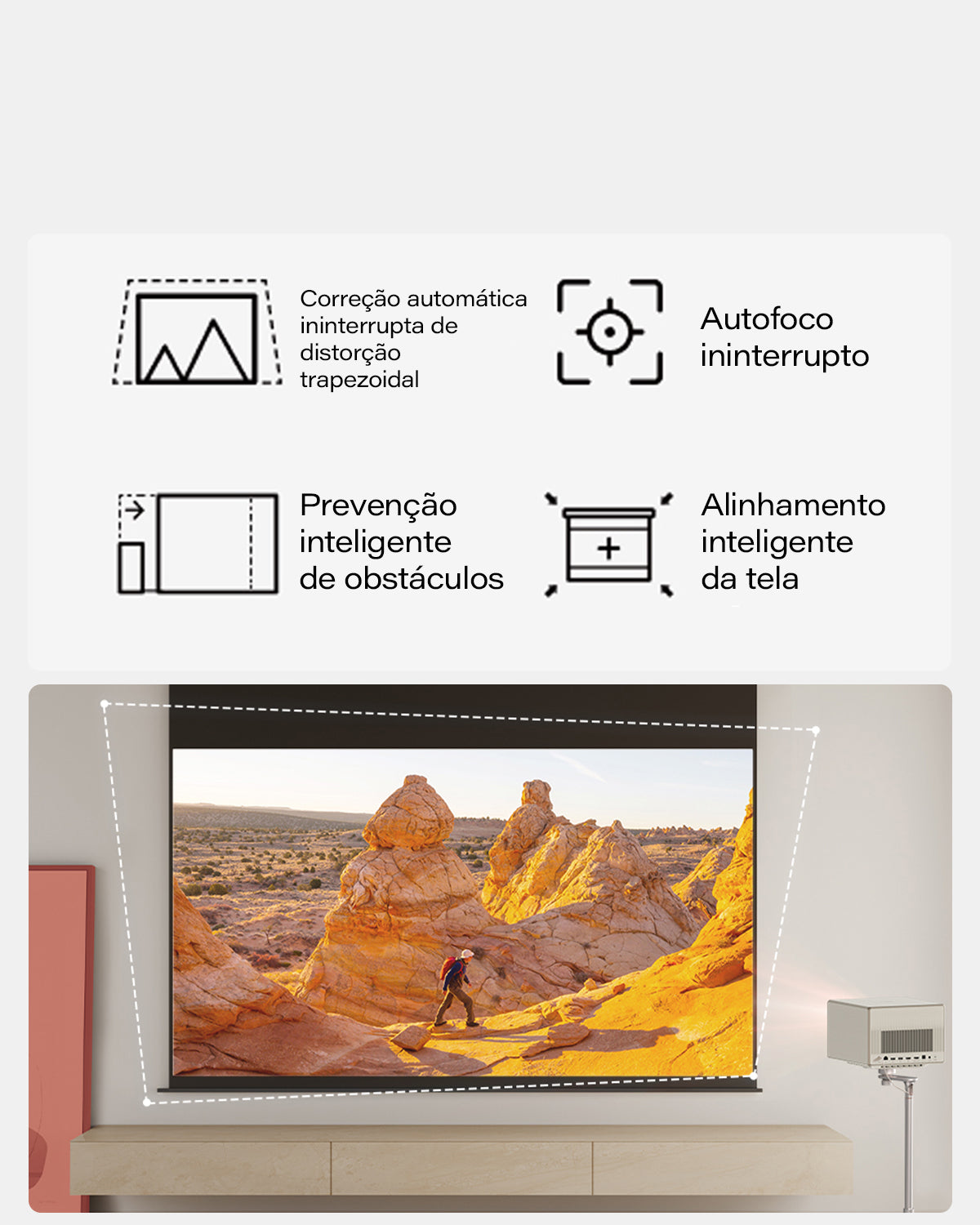 Correção Automática de Keystone e Foco com Ajuste contínuo e ininterrupto